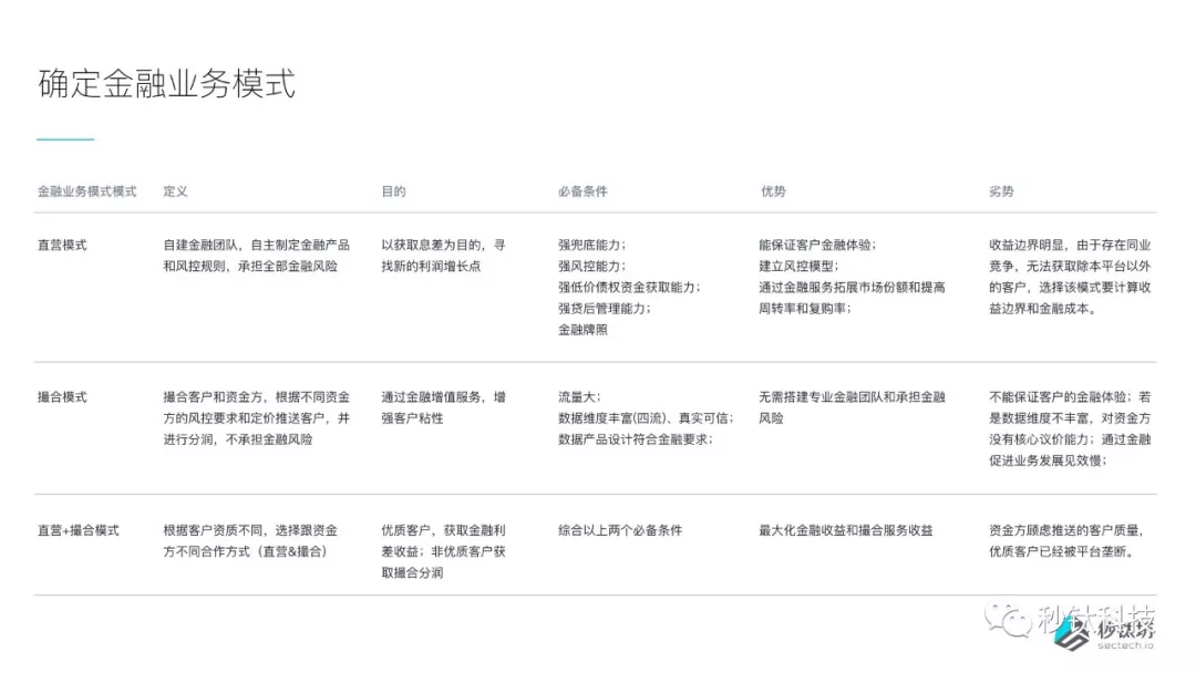 劣势:资金方会顾虑推送客户的质量,担心优质的客户已经被平台自身垄断。